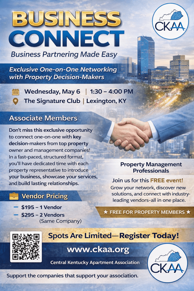 Associate Members: Don’t miss this exclusive opportunity to connect one-on-one with key decision-makers from leading property ownership and management companies. In a fast-paced, structured format, you’ll have dedicated time with each property representative to introduce your business, showcase your services, and build lasting relationships.